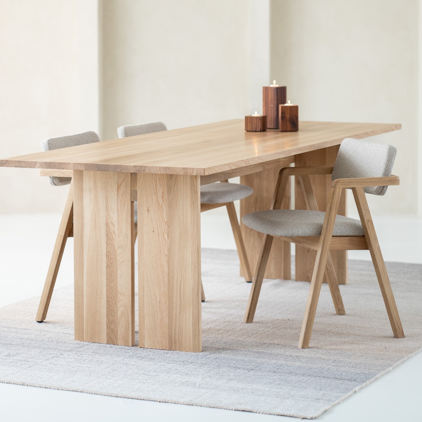 De grote kracht van stoel Enya is het fraaie A-frame van eikenhout. Het oogt stevig, aards en vriendelijk tegelijk. Heel nuchter, niks hoog in de bol. Het maakt deze stoel een stabiele waarde rondom de eettafel. Een favoriete ankerplek in je huis.