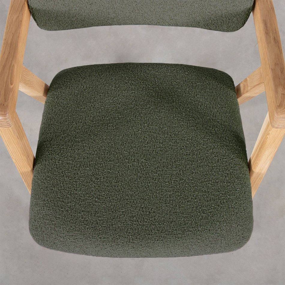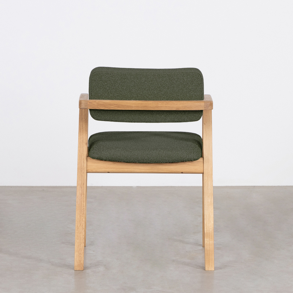 De rugleuning van Enya lijkt bijna weg te kunnen zweven, maar is gewoon stevig verankerd aan doorlopende armleggers. Deze eetkamerstoel wordt standaard uitgevoerd in geolied eiken en is daarnaast verkrijgbaar in gerookt geolied, mocca geolied en whitewash geolied eiken. Enya heeft een gestoffeerde zitting en rugleuning, leverbaar in verschillende stofsoorten en kleuren.