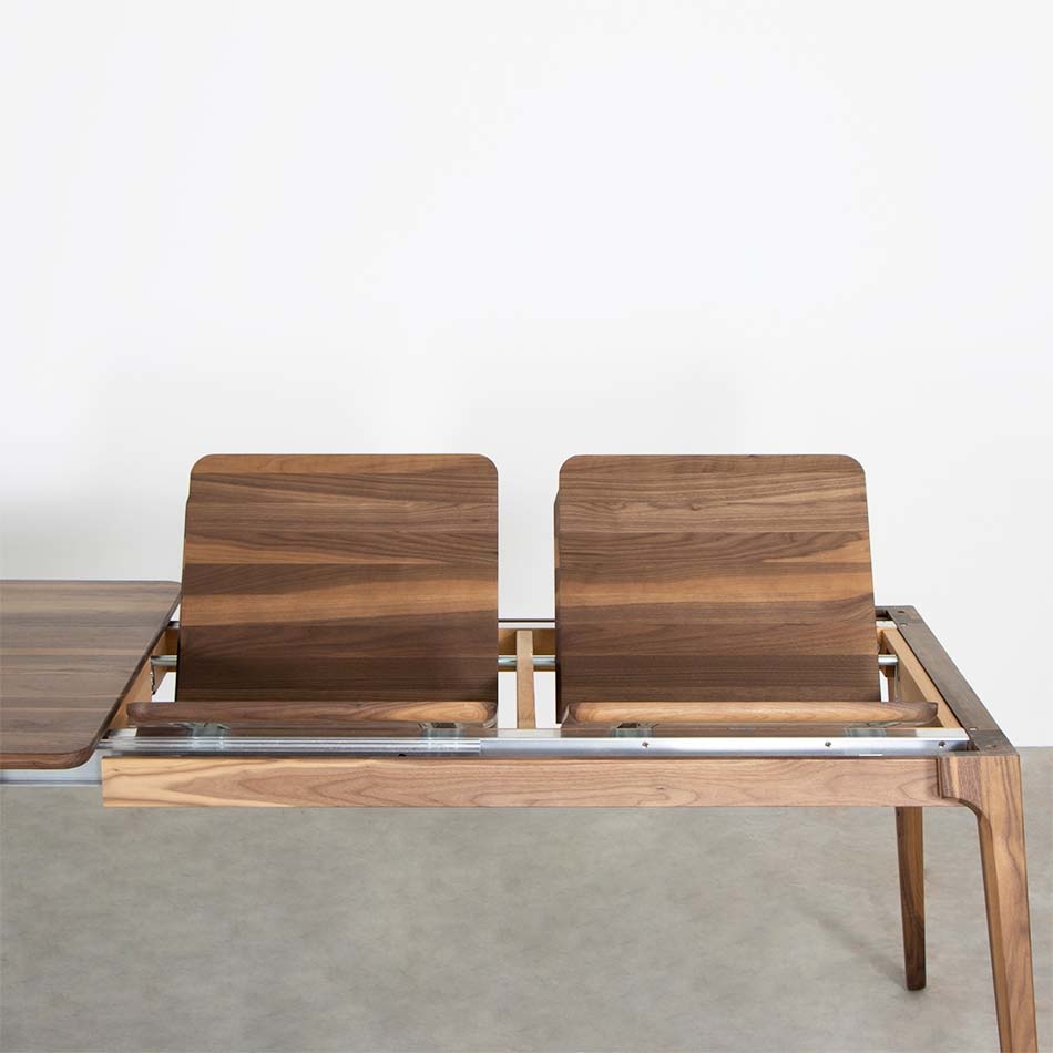 De positionering van de poten is zo gekozen dat gebruiksgemak centraal staat. Zo staan de tafelpoten dicht bij de tafelrand en is er daardoor veel ruimte tussen de poten beschikbaar.