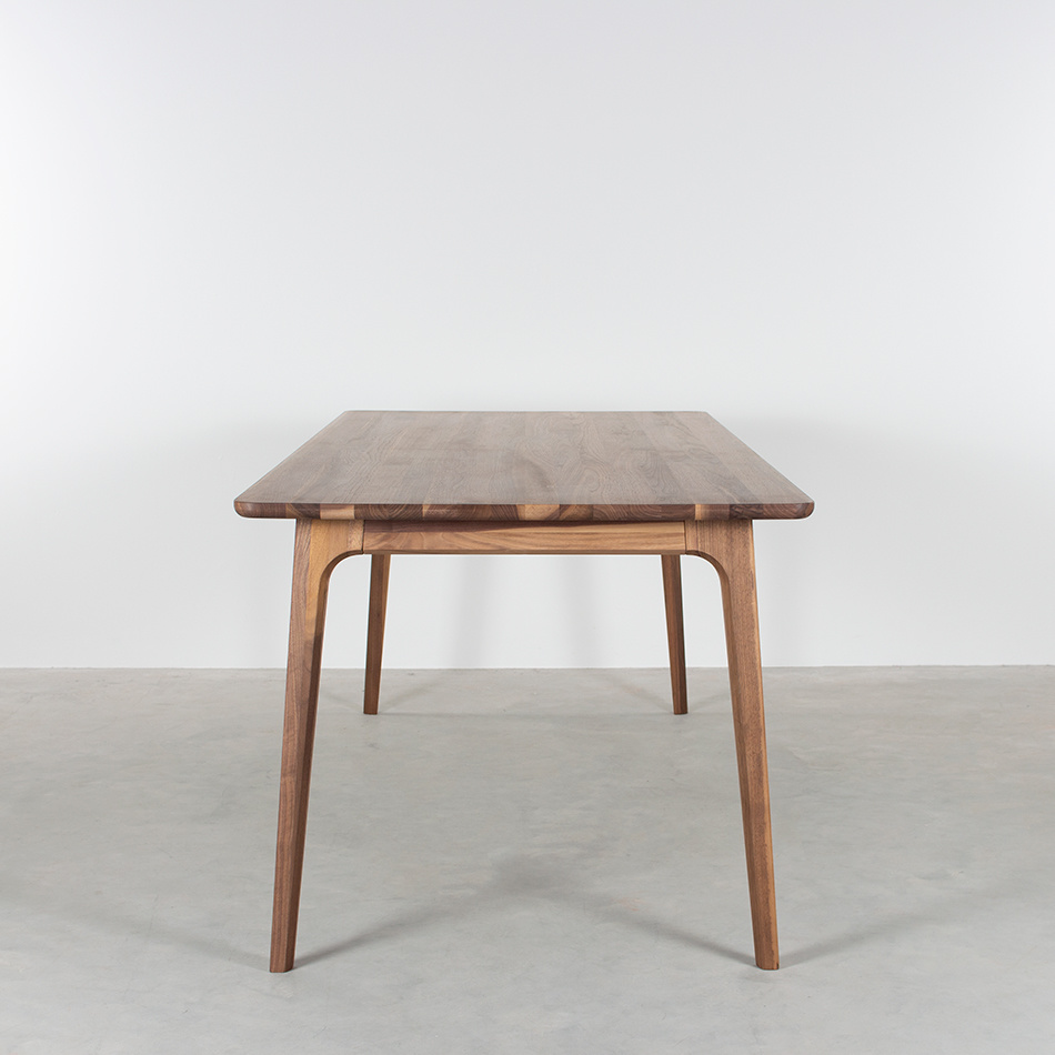 Vorm tot in detail, dat is kenmerkend voor de Fjerre. Het tafelblad heeft een ronde hoekafwerking en ook de zijkanten hebben een gladde ronde afwerking. De bovenkant van het tafelblad is vlak. Er is veel aandacht besteed aan de vorm van de tafelpoten. Het valt niet direct op, maar wie er op let zal het opvallen dat deze uit een vijfhoek bestaat. De overgang naar de onderrand is ook prachtig en vormt 1 geheel.