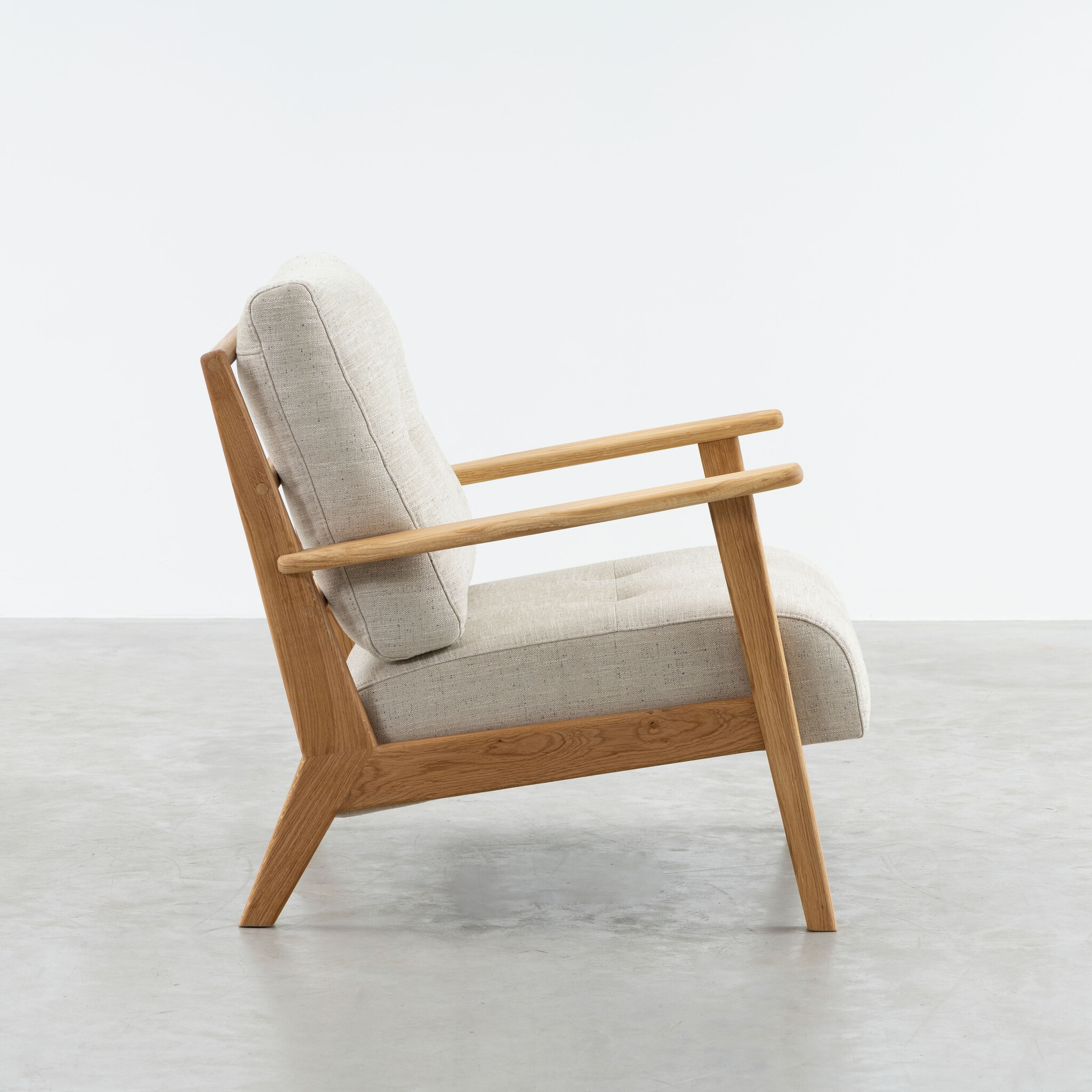 Fauteuil Hans is gemaakt van zorgvuldig geselecteerd eikenhout dat vakkundig en met respect is behandeld. Het hout is afgewerkt met naturel olie. De armleggers van de stoel zijn breed en mooi afgerond en voelen dan ook heerlijk aan.