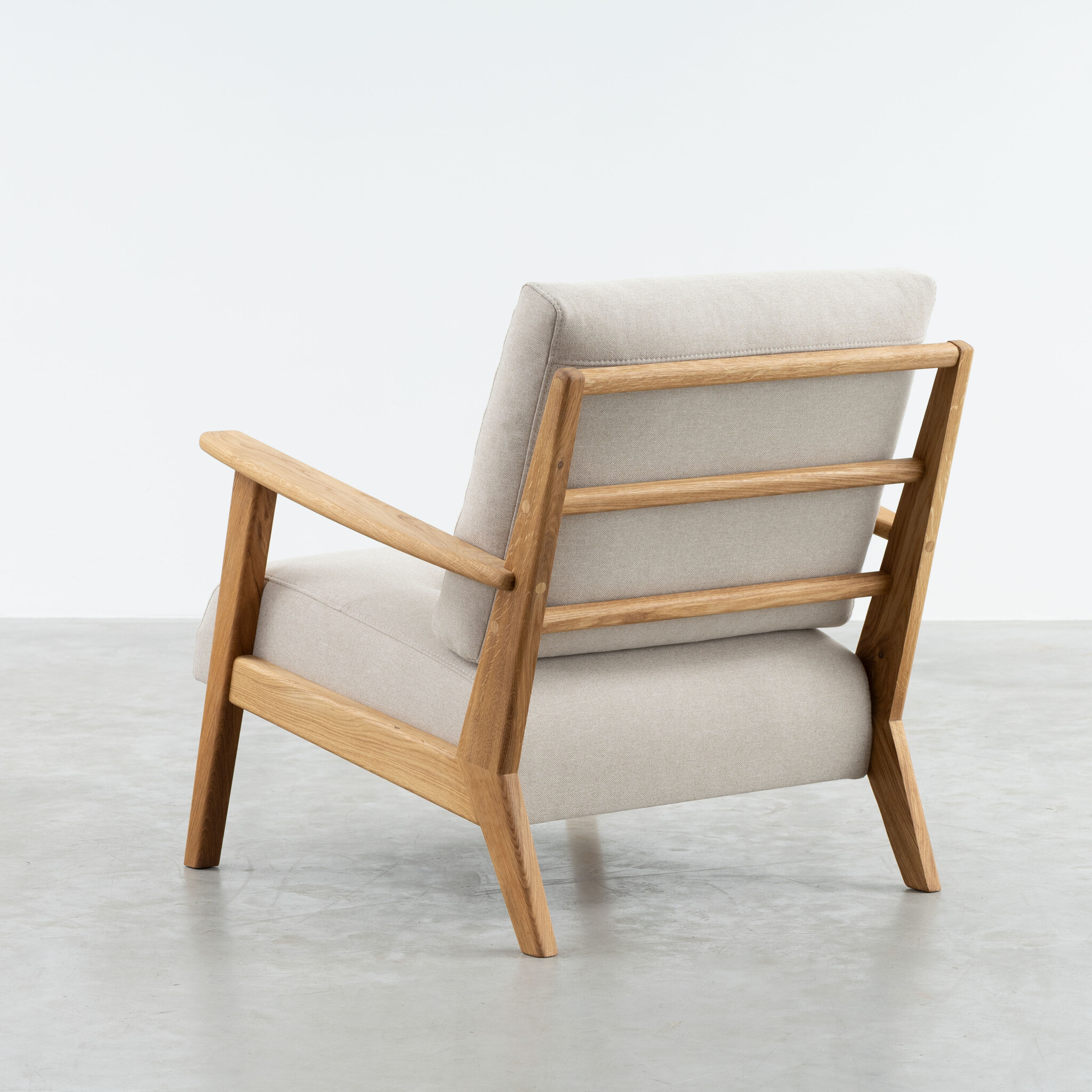 Fauteuil Hans is gemaakt van zorgvuldig geselecteerd eikenhout dat vakkundig en met respect is behandeld. Het hout is afgewerkt met naturel olie. De armleggers van de stoel zijn breed en mooi afgerond en voelen dan ook heerlijk aan.
