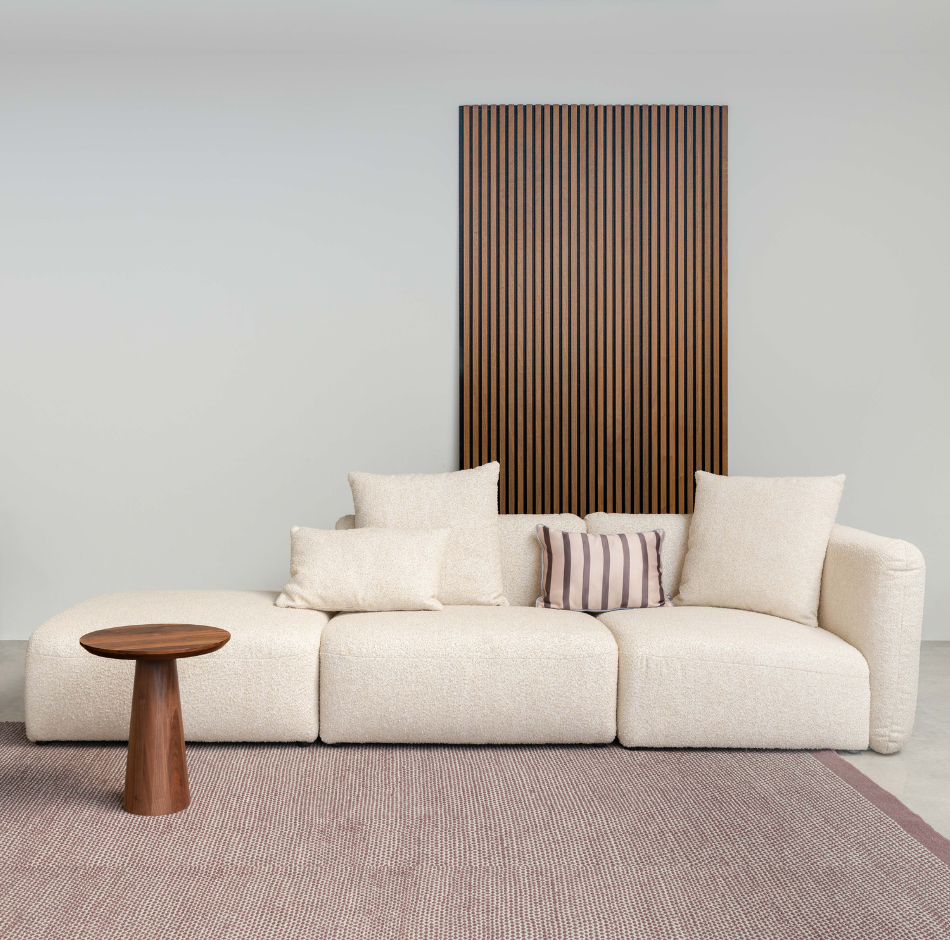 Nog een pluspunt: de welgevormde modulaire bank Idès leent zich ook voor een plekje midden in de ruimte, los van de muren. Van alle kanten mooi, loop er maar een rondje omheen. En nog meer kussens erbij? Doen! Ze zijn in verschillende maten verkrijgbaar.
