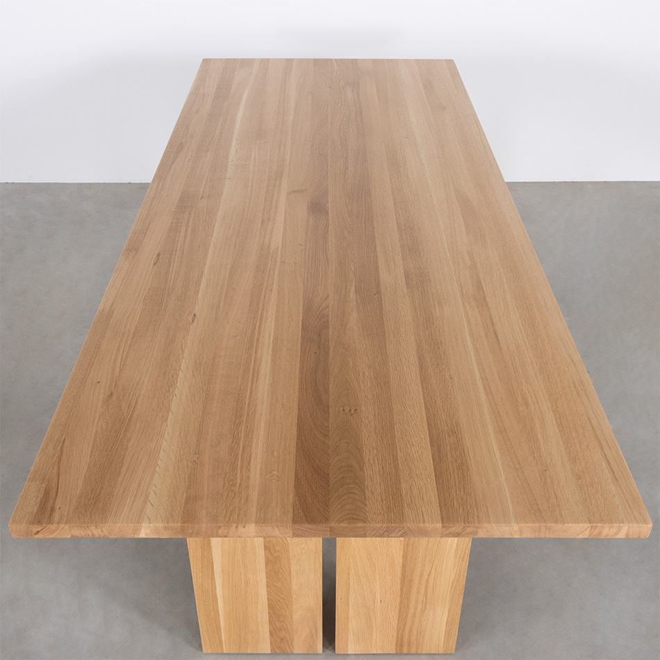 Eettafel Julma is recht door zee en bruut eerlijk. Deze tafel is volledig opgebouwd uit rechthoekige panelen. Van prachtig massief hout, natuurlijk. Dag doorsnee, hallo statement.