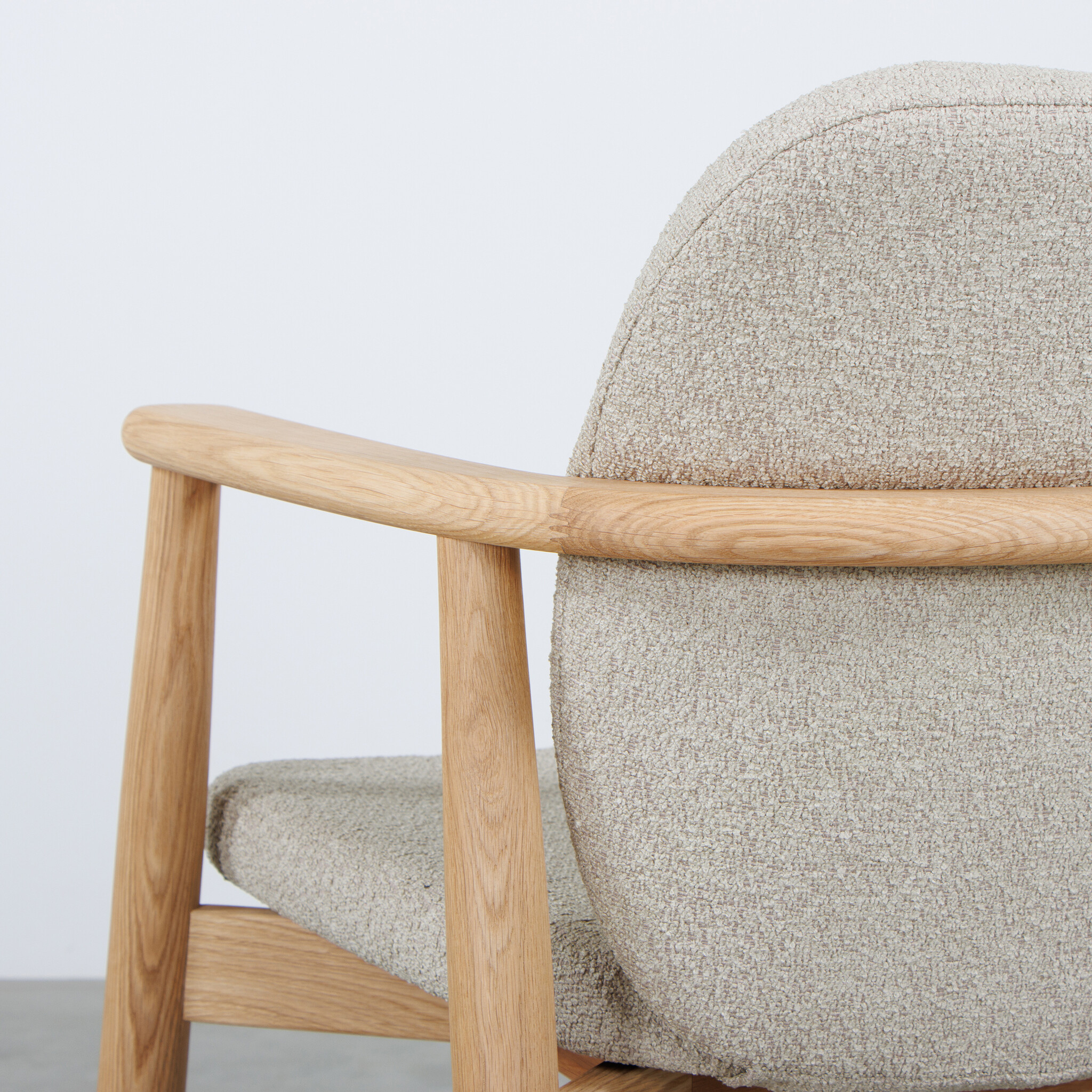 Eetkamerstoel Kaisa valt op door haar verfijnde details en uitgekiende proporties. De ronde armleuningen en de naadloze overgang naar de rugleuning geven de stoel een vloeiende en elegante uitstraling. Het massief eikenhouten frame is zorgvuldig afgewerkt met een olie, wat de natuurlijke schoonheid van het hout benadrukt. Kaisa is een stevige stoel en biedt veel zitcomfort dankzij de gestoffeerde zitting en rugleuning. De gestoffeerde zitting en rugleuning is leverbaar in verschillende stofsoorten en kleuren, zodat je kunt kiezen wat het beste bij jouw interieurstijl past.