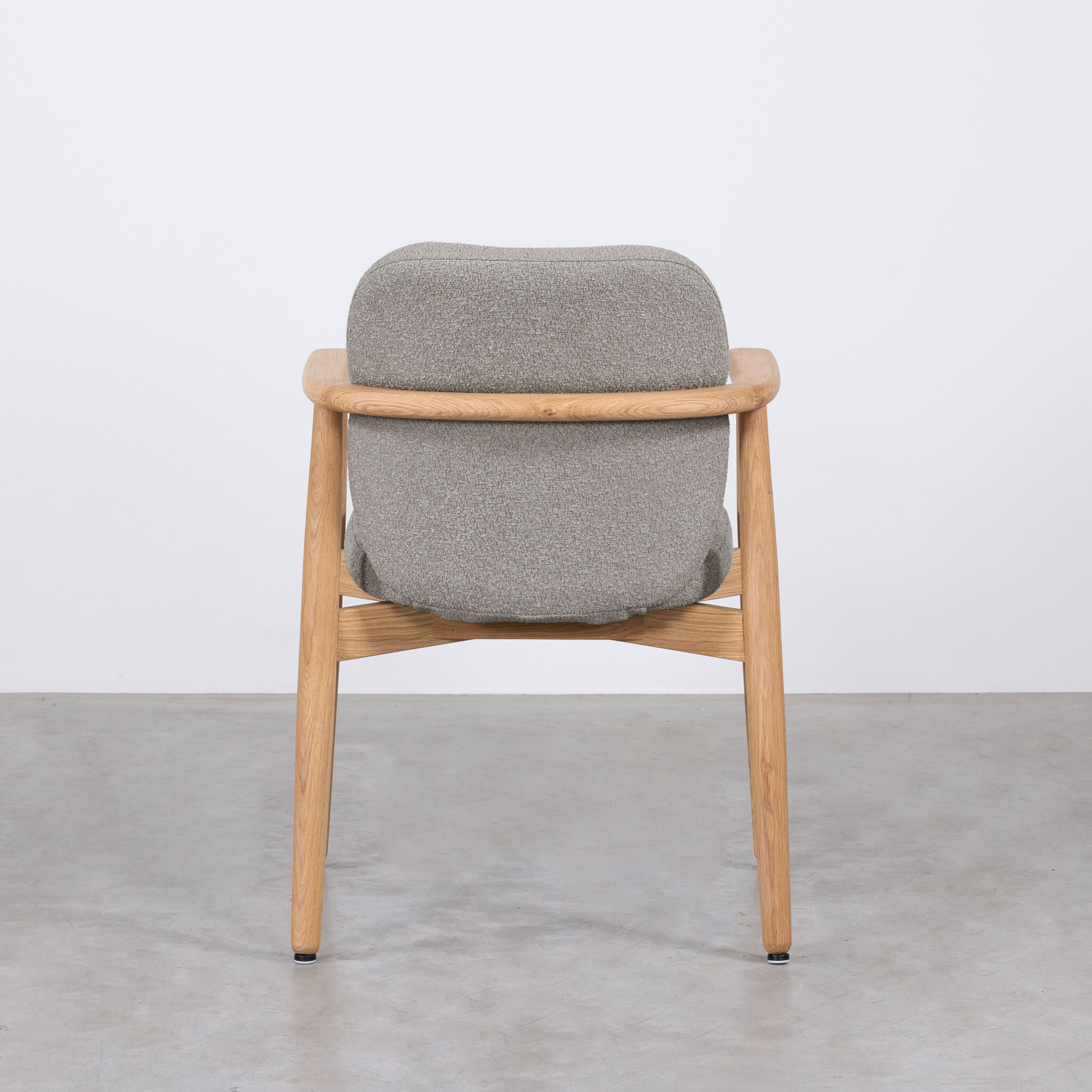 Eetkamerstoel Kaisa valt op door haar verfijnde details en uitgekiende proporties. De ronde armleuningen en de naadloze overgang naar de rugleuning geven de stoel een vloeiende en elegante uitstraling. Het massief eikenhouten frame is zorgvuldig afgewerkt met een olie, wat de natuurlijke schoonheid van het hout benadrukt. Kaisa is een stevige stoel en biedt veel zitcomfort dankzij de gestoffeerde zitting en rugleuning. De gestoffeerde zitting en rugleuning is leverbaar in verschillende stofsoorten en kleuren, zodat je kunt kiezen wat het beste bij jouw interieurstijl past.