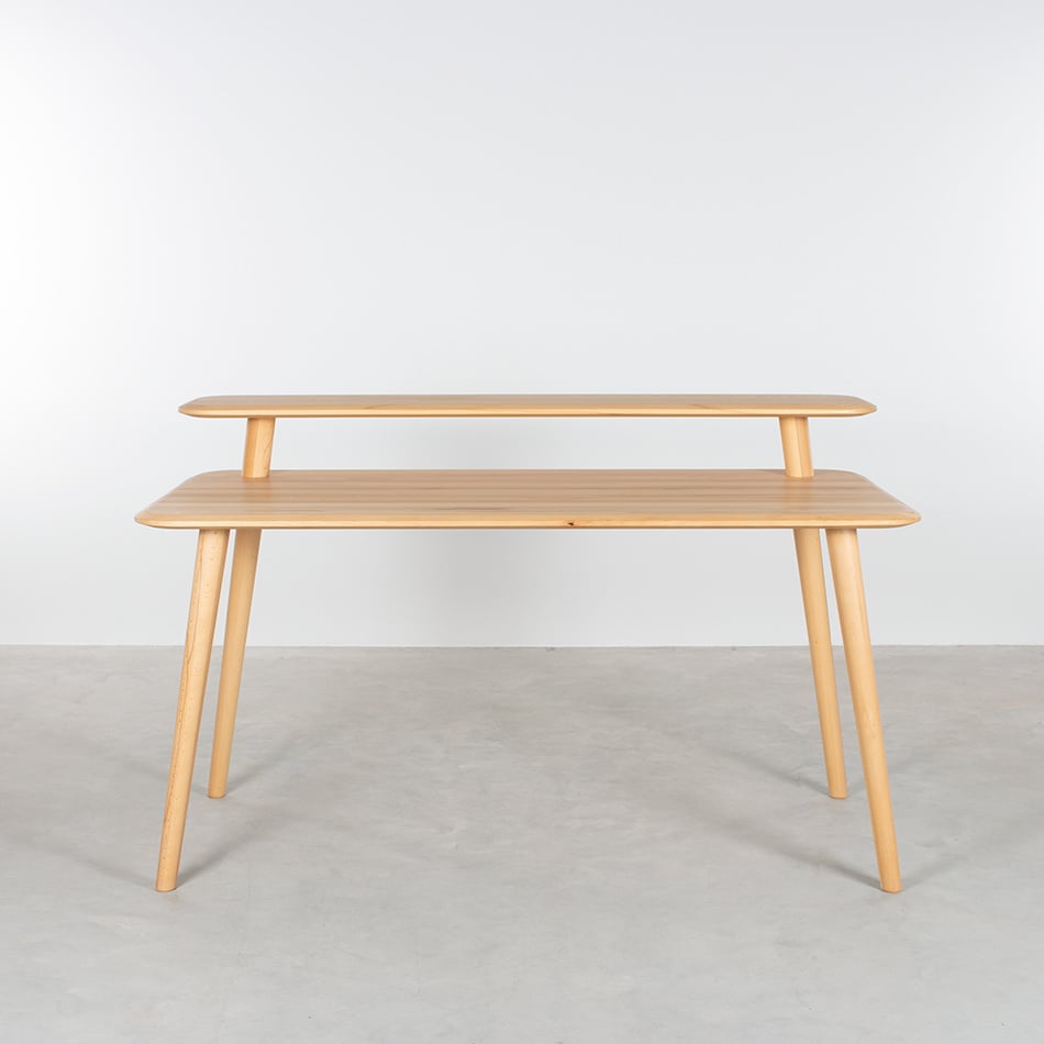 Dit Olger bureau is anders dan het standaard Olger bureau, waar de poten een doorsteek hebben in het blad. Bij dit sale bureau, heeft het tafelblad geen doorsteek van poten in het blad.