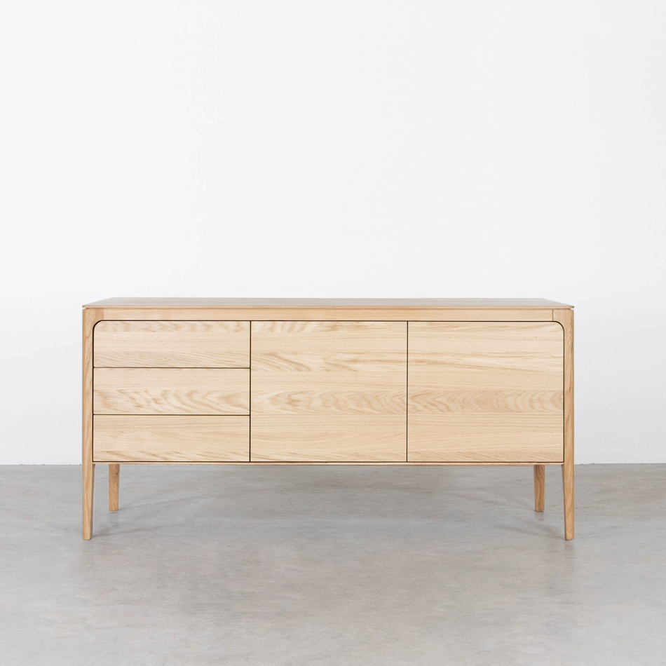 Het Rikke dressoir is een houten dressoir in Scandinavische stijl, waarbij design en functionaliteit goed samen gaat. Dit massief houten dressoir heeft ronde vormen en een lichte uitstraling. De poten van de Rikke lopen in één subtiele vloeiende beweging door. Met het Rikke dressoir haal je een fraai design dressoir in huis. Functioneel én een heuse blikvanger in jouw woonruimte.
