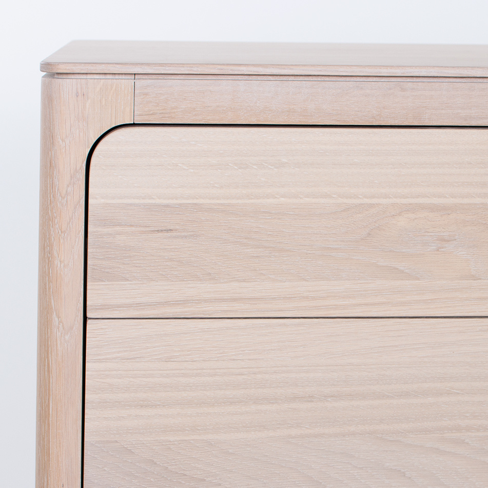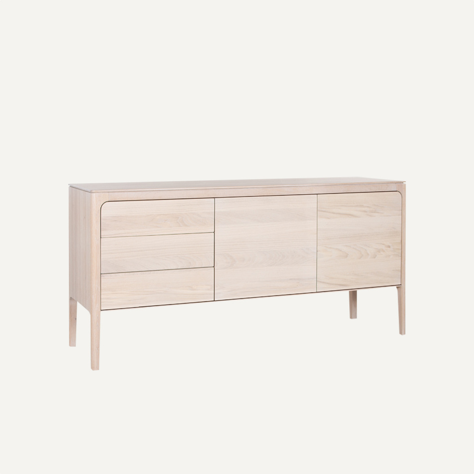 Het Rikke dressoir is een houten dressoir in Scandinavische stijl, waarbij design en functionaliteit goed samen gaat. Dit massief houten dressoir heeft ronde vormen en een lichte uitstraling. De poten van de Rikke lopen in één subtiele vloeiende beweging door. Met het Rikke dressoir haal je een fraai design dressoir in huis. Functioneel én een heuse blikvanger in jouw woonruimte.