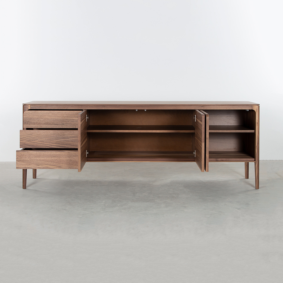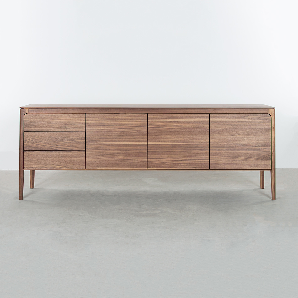 Het Rikke dressoir is een houten dressoir in Scandinavische stijl, waarbij design en functionaliteit goed samen gaat. Dit massief houten dressoir heeft ronde vormen en een lichte uitstraling. De poten van de Rikke lopen in één subtiele vloeiende beweging door. Met het Rikke dressoir haal je een fraai design dressoir in huis. Functioneel én een heuse blikvanger in jouw woonruimte.