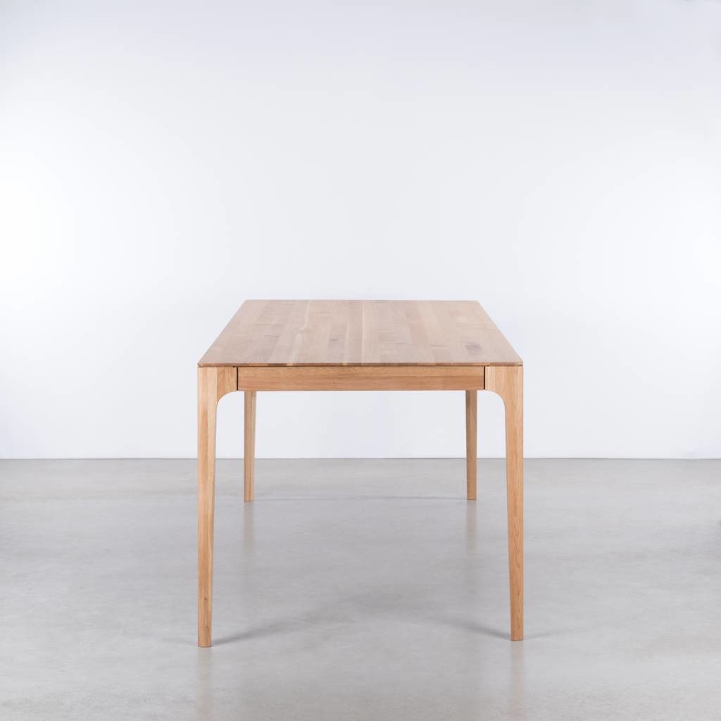 De Rikke is een uitschuifbare massief houten tafel. Niet zoveel ruimte in huis maar toch een tafel willen hebben waar iedereen aan past? Dan past de uitschuifbare Rikke tafel helemaal bij jou. Een tafel met een fraai en functioneel design. De tafel is te koop in verschillende houtsoorten, afwerkingen en afmetingen.