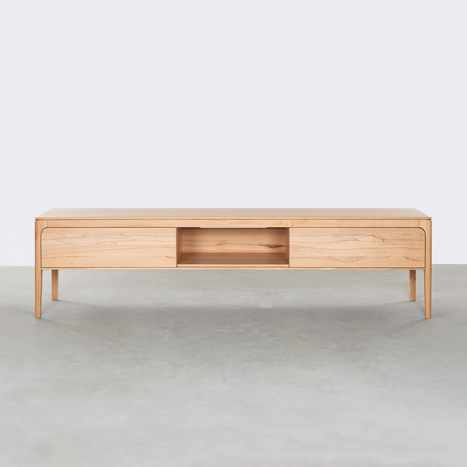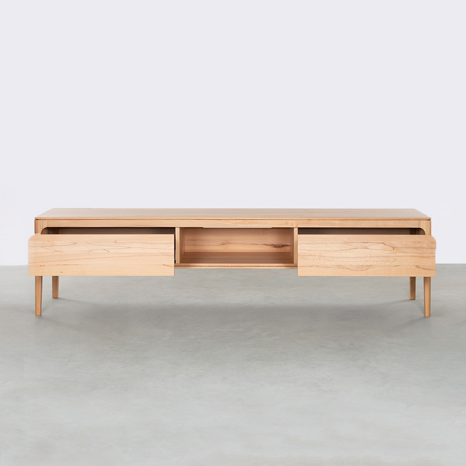 Ben jij op zoek naar een bijzonder beuken TV-meubel? Het Rikke TV-meubel is een massief houten TV-meubel, met een Scandinavisch ontwerp. Dit massief houten meubel heeft ronde vormen en een lichte uitstraling. De poten lopen in één subtiele vloeiende beweging door.
