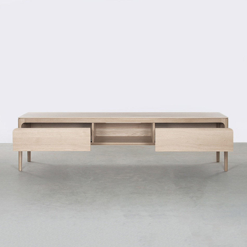 Met een TV-meubel (ook wel mediameubel of TV-kast genoemd) maak je een einde aan al die kabels in je woonkamer. Het meubel ondersteunt je TV en zorgt ervoor dat al jouw media-apparatuur en bijbehorende kabels gemakkelijk kunnen worden opgeborgen. Het Rikke TV-meubel van ons merk Sav&Økse is een houten TV-meubel in Scandinavische stijl, waarbij design en functionaliteit goed samen gaat. Het Rikke TV-meubel geeft je televisie en audioapparatuur een stevige Scandinavische basis om op te staan.