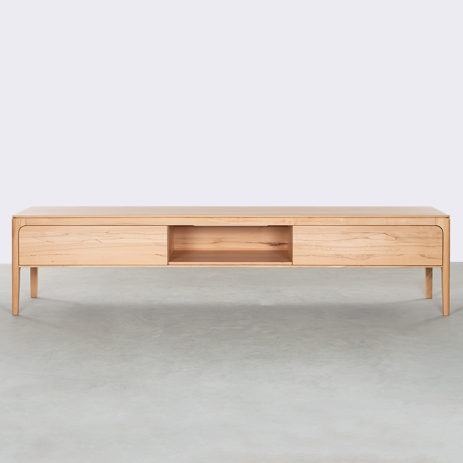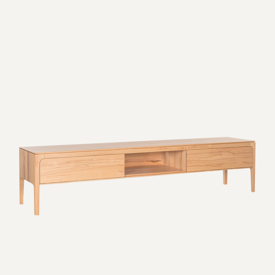 Ben jij op zoek naar een bijzonder beuken TV-meubel? Het Rikke TV-meubel is een massief houten TV-meubel, met een Scandinavisch ontwerp. Dit massief houten meubel heeft ronde vormen en een lichte uitstraling. De poten lopen in één subtiele vloeiende beweging door.