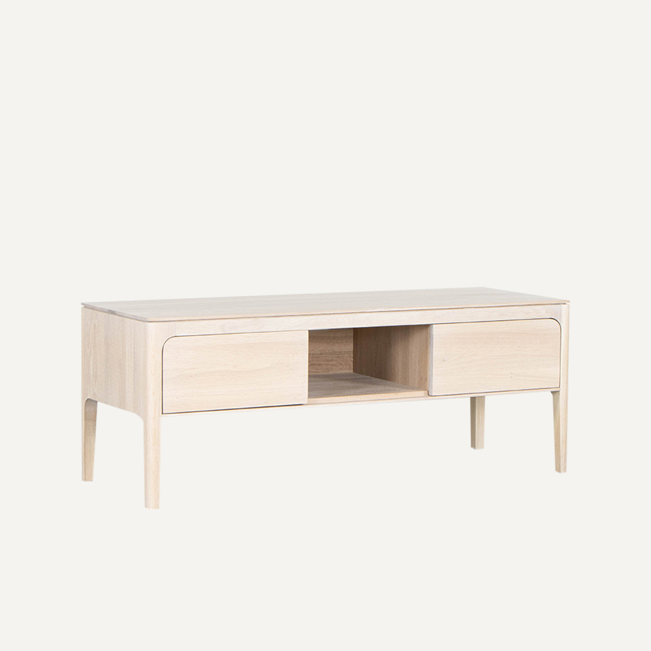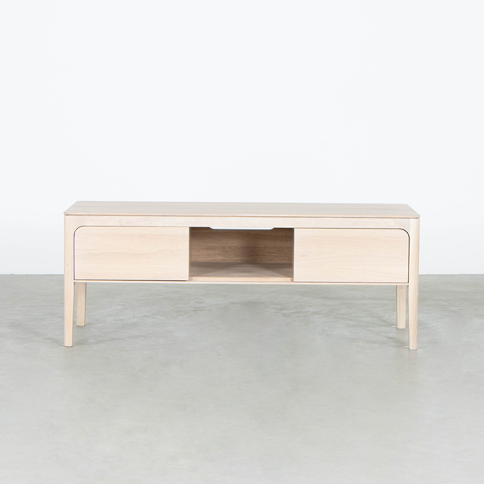Met een TV-meubel (ook wel mediameubel of TV-kast genoemd) maak je een einde aan al die kabels in je woonkamer. Het meubel ondersteunt je TV en zorgt ervoor dat al jouw media-apparatuur en bijbehorende kabels gemakkelijk kunnen worden opgeborgen. Het Rikke TV-meubel van ons merk Sav & Økse is een houten TV-meubel in Scandinavische stijl, waarbij design en functionaliteit goed samen gaat. Het Rikke TV-meubel geeft je televisie en audioapparatuur een stevige Scandinavische basis om op te staan.