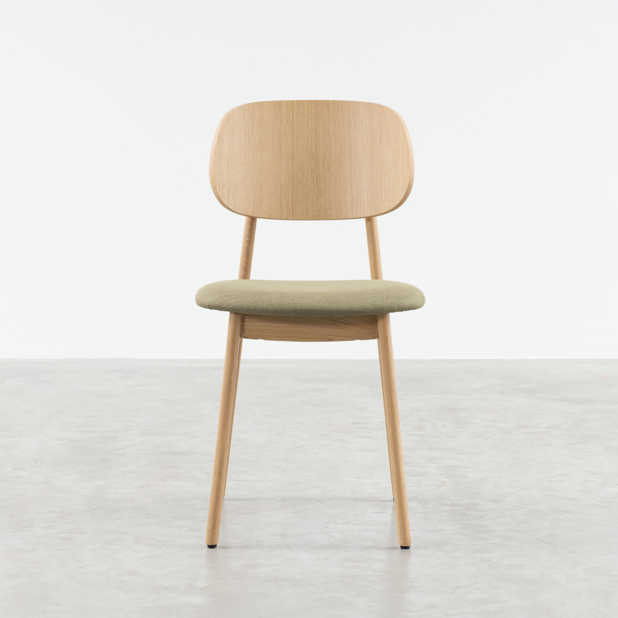 Product: Houten eetkamerstoel met gestoffeerde zitting khaki.