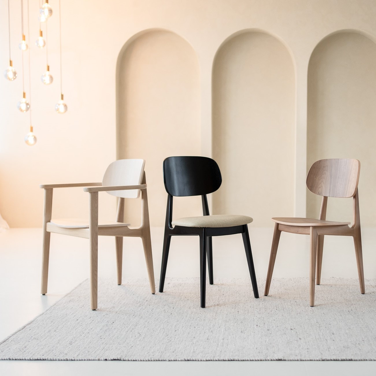 Net als de andere meubels uit de Sav & Økse collectie, is de Sinni ontworpen vanuit een praktisch en nuchter oogpunt. Het is een houten eetkamerstoel met een vriendelijk karakter en vertrouwd uiterlijk. De stoel is volledig gemaakt van hoogwaardig eikenhout. De taps toelopende poten ondersteunen de gebogen zitting en rugleuning.