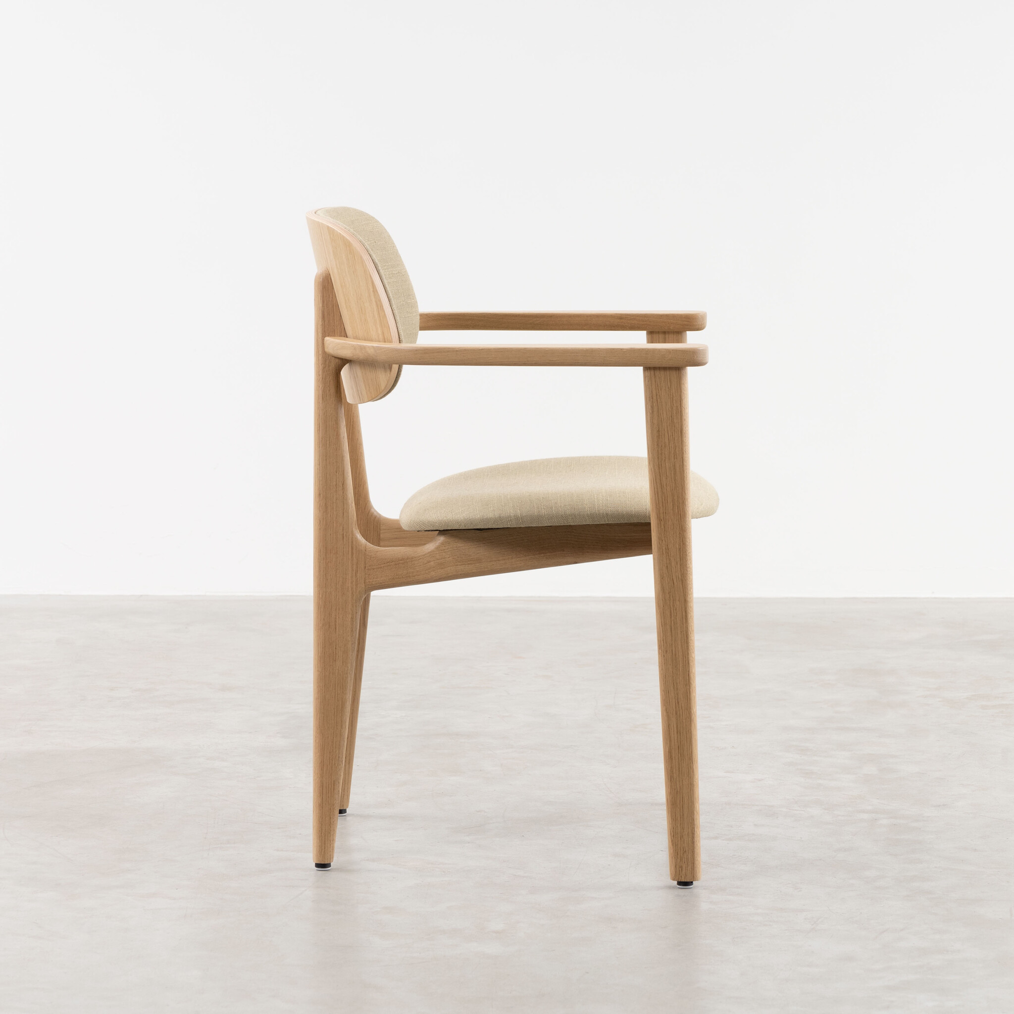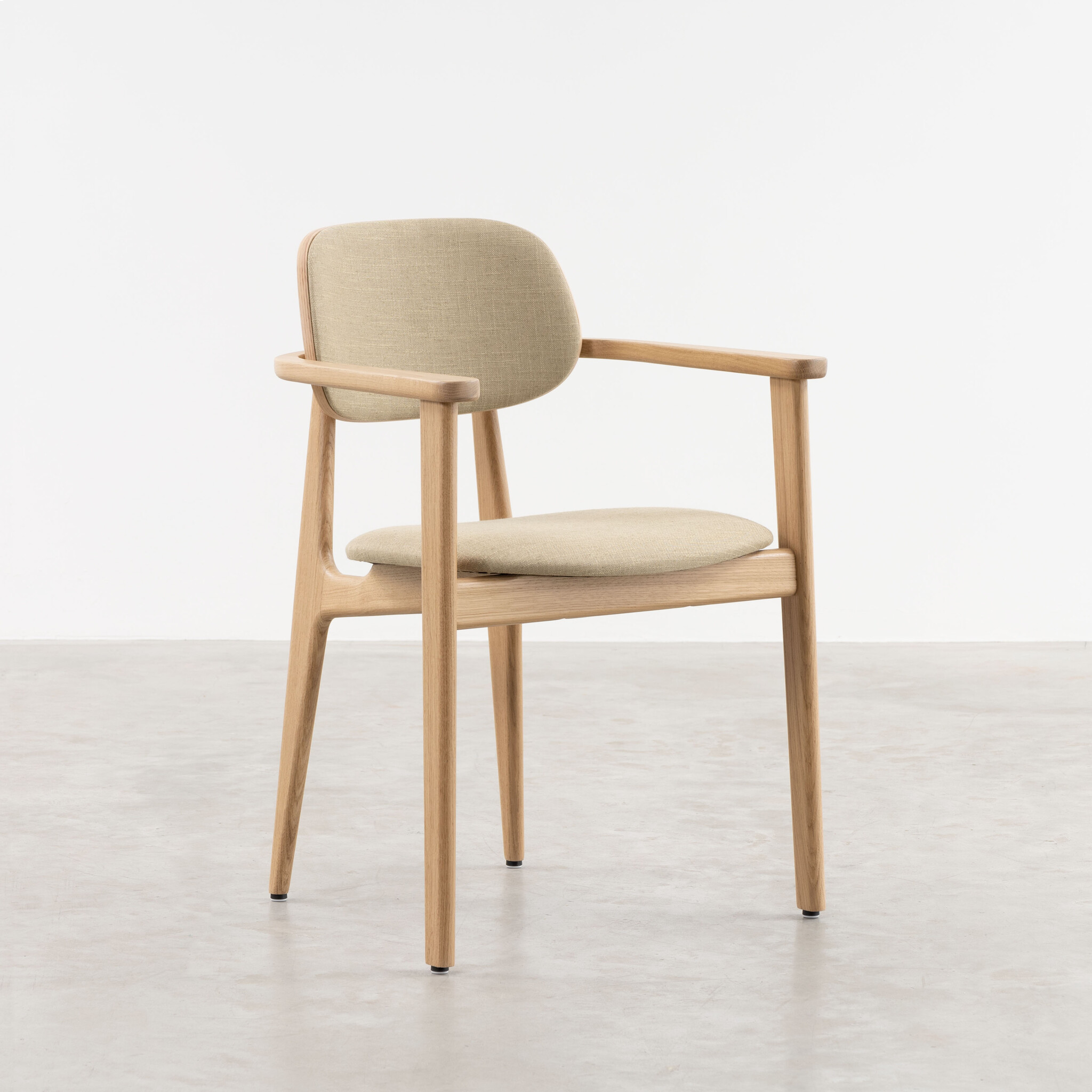 De Sinni houten eetkamerstoel met armleuningen is een charmante en tijdloze stoel met Scandinavisch design. Volledig gemaakt van hoogwaardig eikenhout. Zonder overbodige details is deze speelse stoel vanaf elke hoek mooi om te zien.