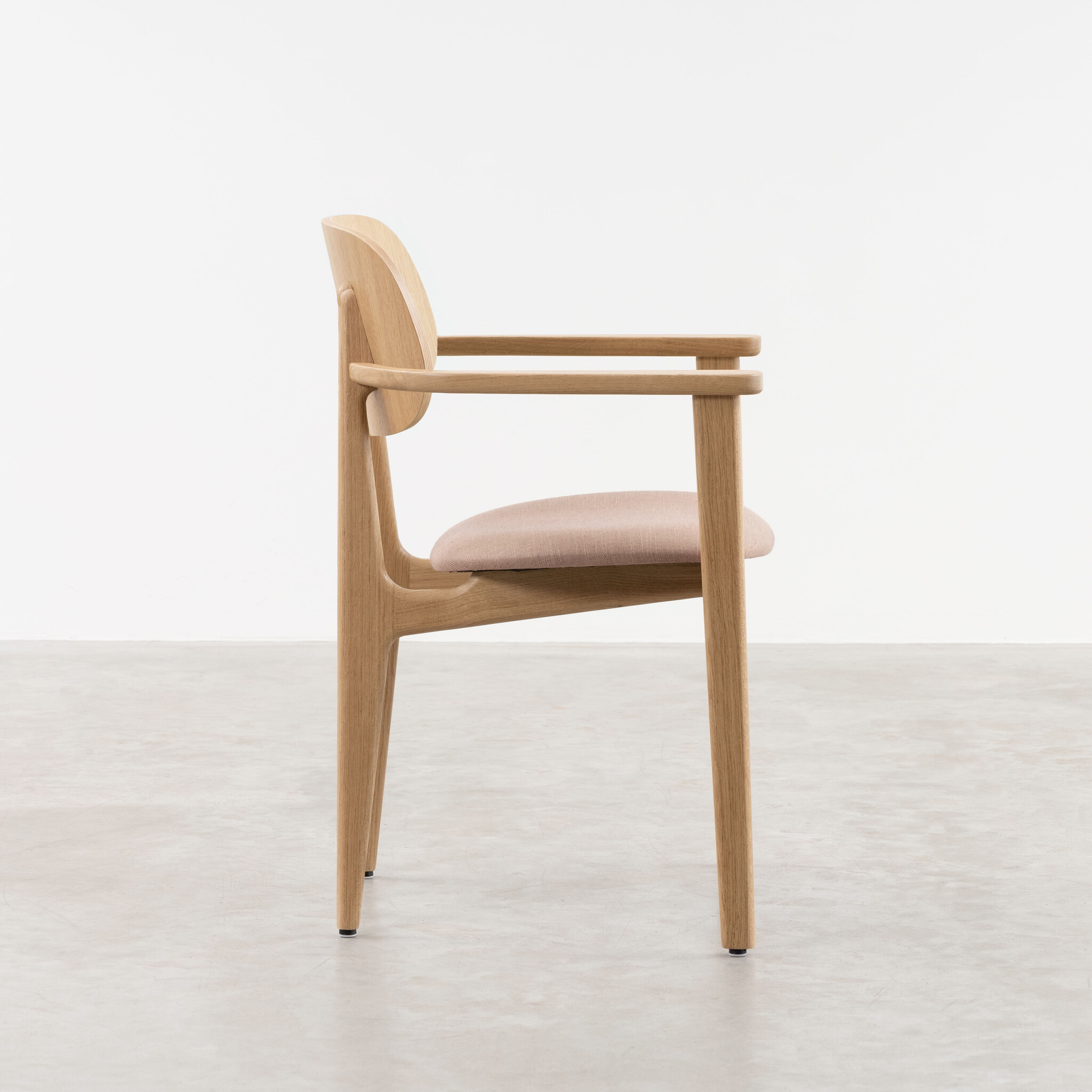 De Sinni houten eetkamerstoel met armleuningen is een charmante en tijdloze stoel met Scandinavisch design. Volledig gemaakt van hoogwaardig eikenhout. Zonder overbodige details is deze speelse stoel vanaf elke hoek mooi om te zien.
