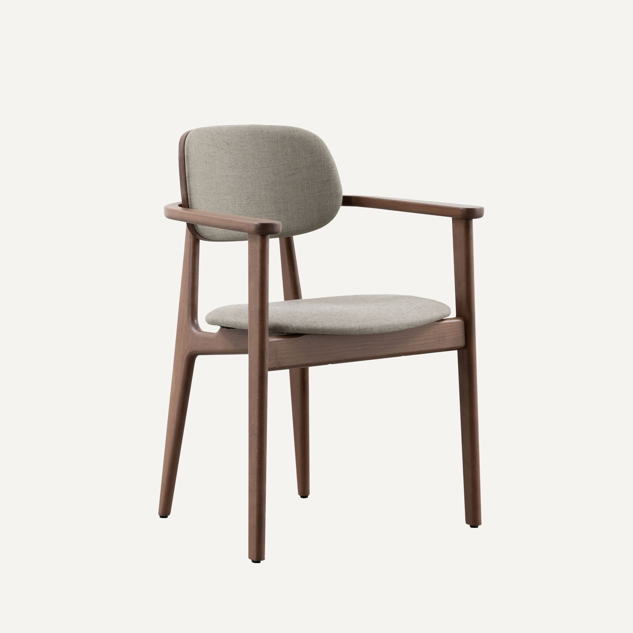 De Sinni houten eetkamerstoel met armleuningen is een charmante en tijdloze stoel met Scandinavisch design. Volledig gemaakt van hoogwaardig beukenhout met een walnootkleur afwerking. Zonder overbodige details is deze speelse stoel vanaf elke hoek mooi om te zien. Voor extra comfort is de rugleuning en zitting gestoffeerd met Piquet stof.