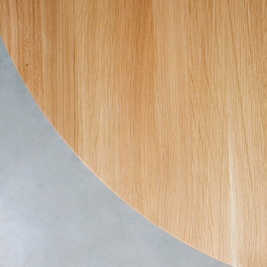 Tafel Tinne heeft een rond blad van massief hout en een slanke trompetvoet. Het ontwerp is modern en rustig, met sterke materialen en een stabiele basis. Het houten blad geeft de tafel een warme uitstraling. De poot is leverbaar in twee kleuren, zodat je de tafel goed kunt laten aansluiten op je interieur.