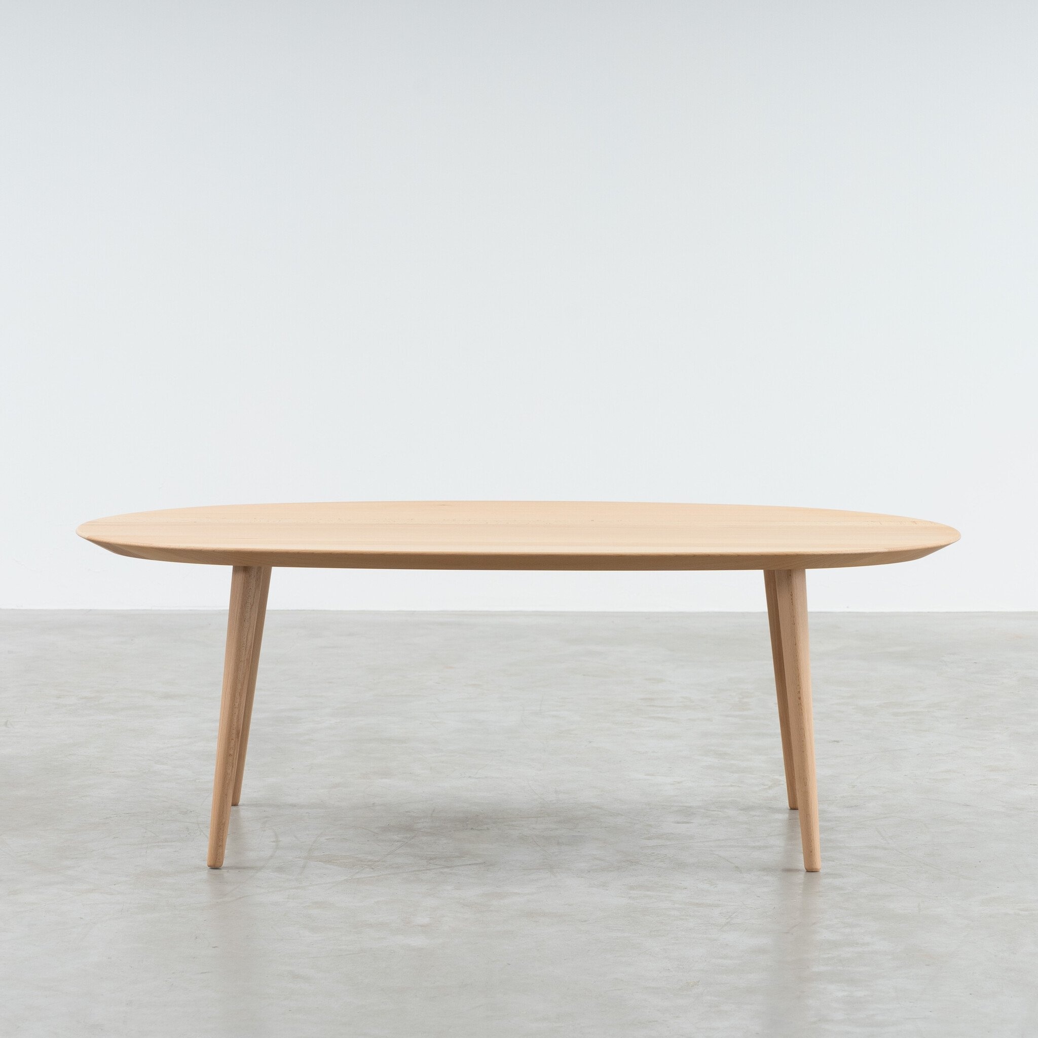 De ovale Tomrer salontafel is een tafeltje met een ranke constructie en een vrij liggend blad. Hierdoor oogt het tafeltje licht en zacht. De randen zijn verjongd en de vloeiende lijnen van het design maken de tafel aaibaar. De vier poten van deze salontafel staan iets schuin onder het tafelblad en hebben afgeronde hoeken.