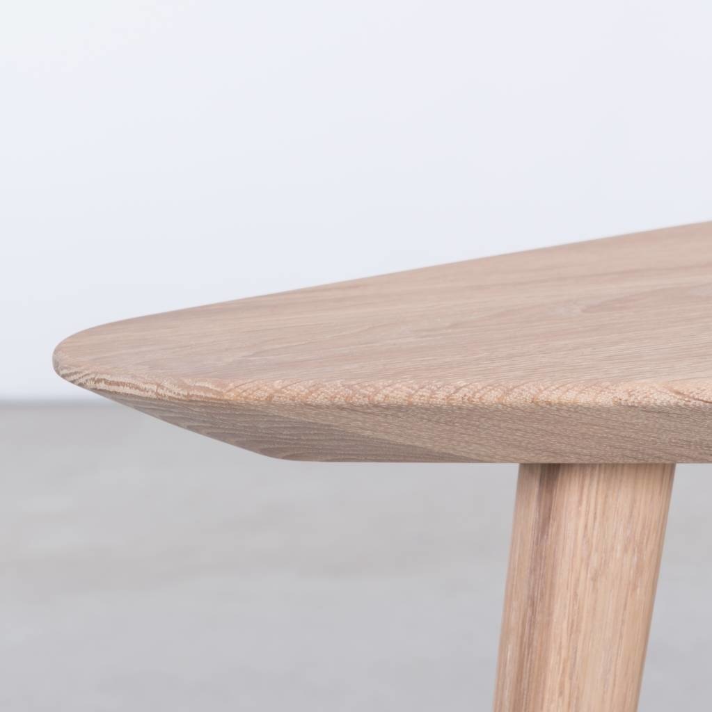 De houten salontafel set Tomrer komt uit de Sav & Økse collectie. Een collectie Scandinavische tafels van massief hout. Kenmerkend in hun eenvoud en kwaliteit. Dit zie je goed terug bij de Tomrer salontafel. Een tafeltje met een ranke constructie en een vrij liggend blad. Hierdoor oogt het tafeltje licht en zacht. De randen zijn verjongd en de vloeiende lijnen van het design maken de tafel aaibaar. De poten staan iets schuin onder het tafelblad en hebben afgeronde hoeken. Zowel de driehoeks vormige als de ronde variant hebben drie poten.